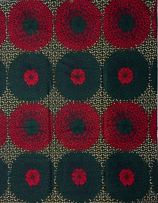 African Print Fabric, Ankara -Red, Green Fabric