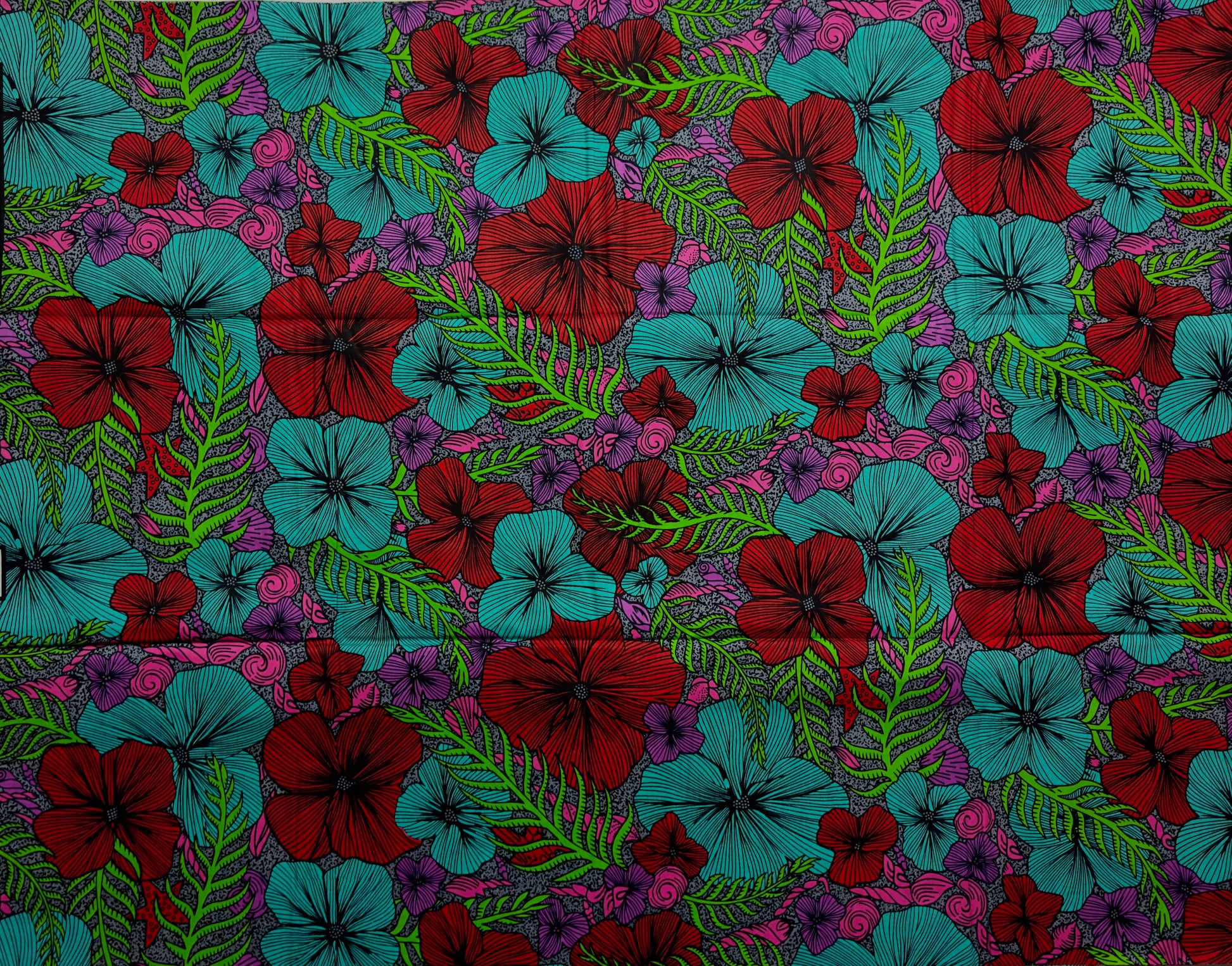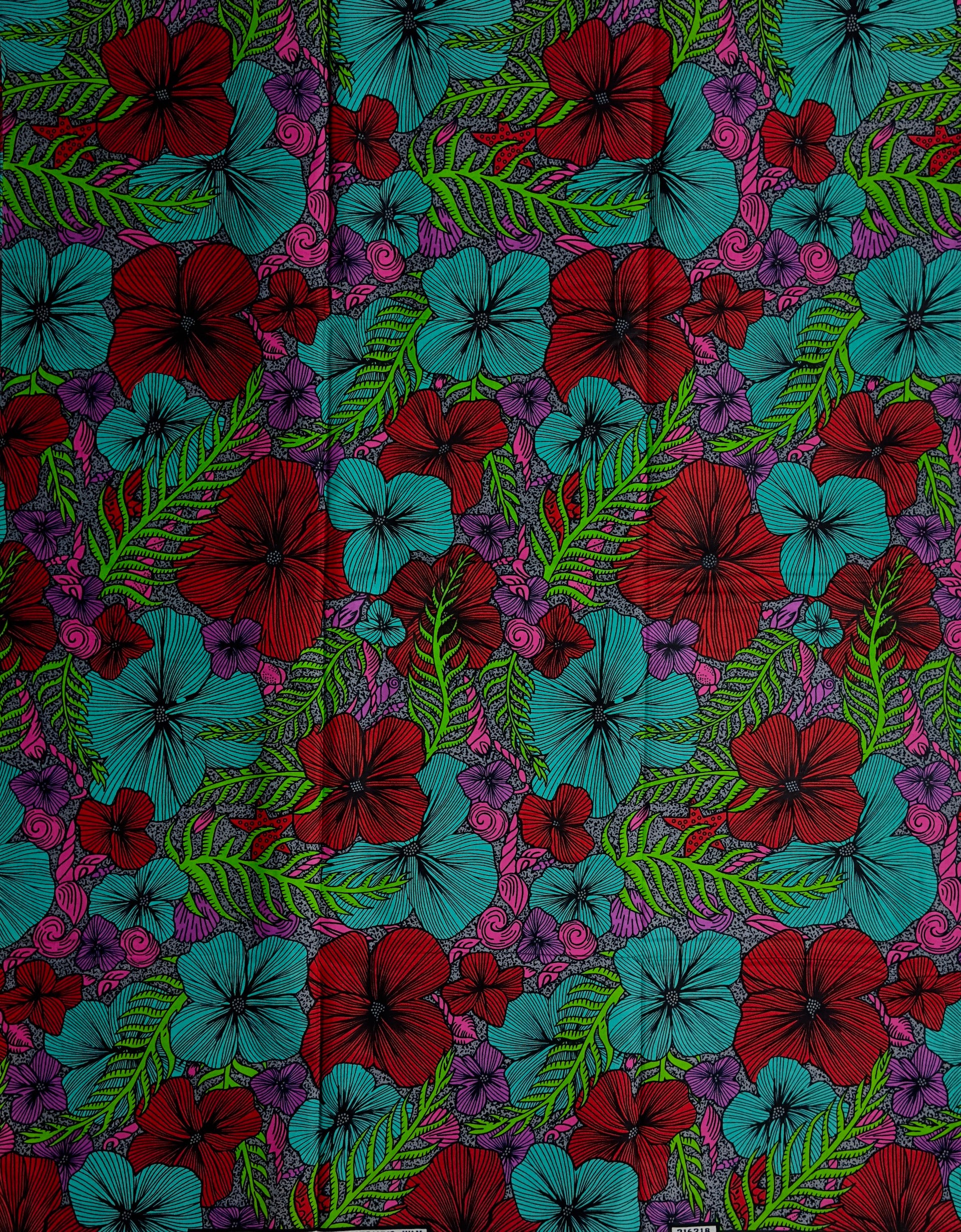 African Print Fabric, Ankara - Red, Green, Pink Fabric